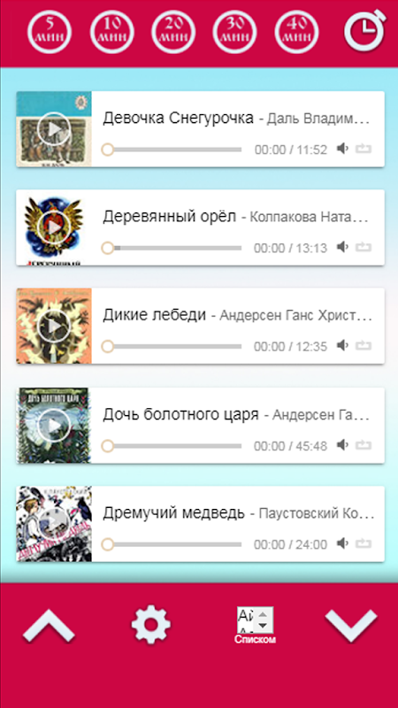 Большая аудиотека сказкок со всего света. Более 250 произведений: сказок, стихов, детских рассказов. В числе прочих в приложении представлены такие авторы, как: Ганс Христиан Андерсен, братья Гримм, Николай Носов, Михаил Пришвин, Корней Чуковский, Амадей Гофман, Александр Пушкин и многие другие. Реализован таймер, чтобы ребенку было удобней засыпать, тёмная тема для ночного режима чтобы не напрягать глаза. Аудиоплеер может работать в фоне и при выключенном экране устройства, а вплывающий список позволит быстро найти полюбившийся трек.