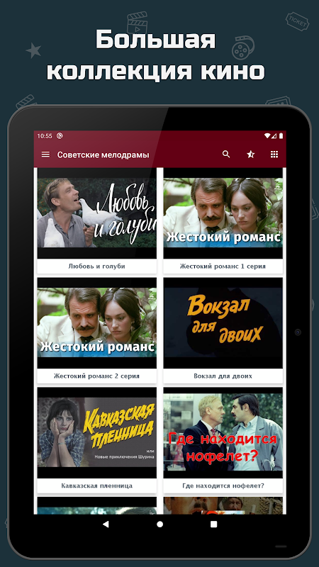 O aplicativo permite que você assista filmes soviéticos no gênero espiritual do "melodrama".