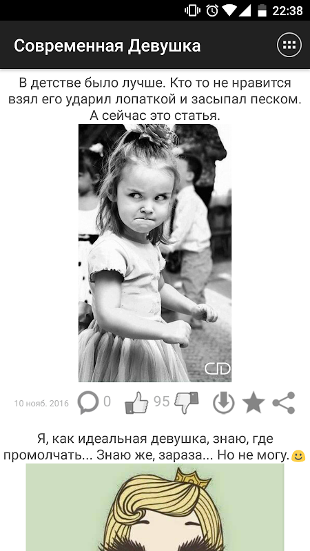 Понравившиеся записи можно комментировать и оценивать. Все понравившиеся картинки можно сохранять в галерее устройства в папке приложения. Ты можешь делиться записями с друзьями через социальные сети Facebook, Вконтакте, Одноклассники, Viber, WhatsApp а так же другие установленные на устройстве приложения. Ну и конечно, ты можешь оставлять лайки и сохранять записи в избранное.