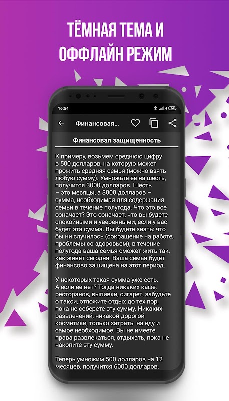 • Возможность настройки приложения: изменение размер шрифта и ночной режим;