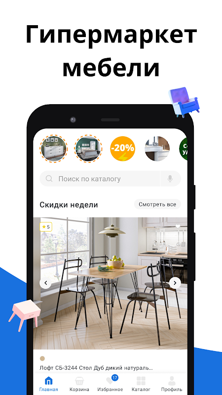Aqui você encontrará TUDO o que precisa para criar uma casa ou chalé aconchegante e funcional! Cozinhas modulares, salas e quartos, soluções prontas de baixo custo para todo o apartamento, camas e colchões, eletrodomésticos e utensílios domésticos - tudo isso pode ser experimentado em casa usando a função de realidade virtual AR.
