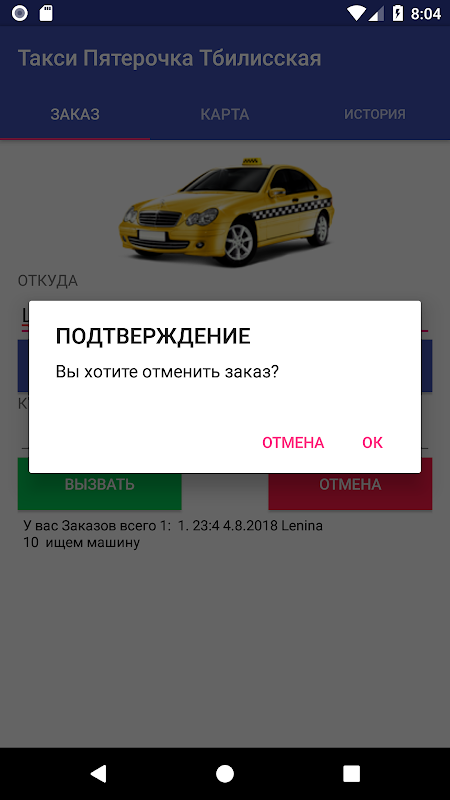 A aplicação de uma chamada de táxi Pyaterochka Tbilisi