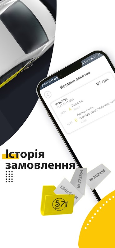 Instale o programa Taxi 571 e peça um táxi em Kyiv. Defina um clique - aproveite ao máximo.