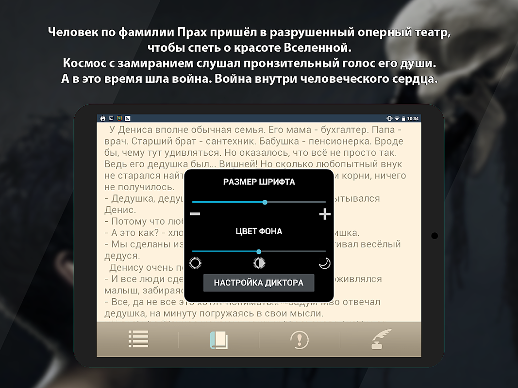 В этом приложении вы сможете читать эту книгу. Приложение «Танцующий в темноте» не требует доступа в Интернет - работает вне сети. В нём вы так же найдёте информацию о всех книжных магазинах России, где продаётся этот роман.