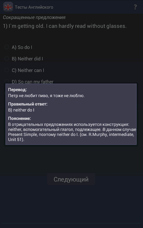 Este apêndice apresenta testes de inglês com respostas, traduções e explicações. Destina-se a professores de inglês, candidatos, crianças em idade escolar, bem como todos aqueles que estão se preparando para fazer os exames de teste em inglês ou querem testar seus conhecimentos. Aqui são coletadas tarefas sobre vocabulário, gramática, habilidades de compreensão de textos em inglês. Comentários curtos são dados para cada teste. Atribuições classificadas por tópico