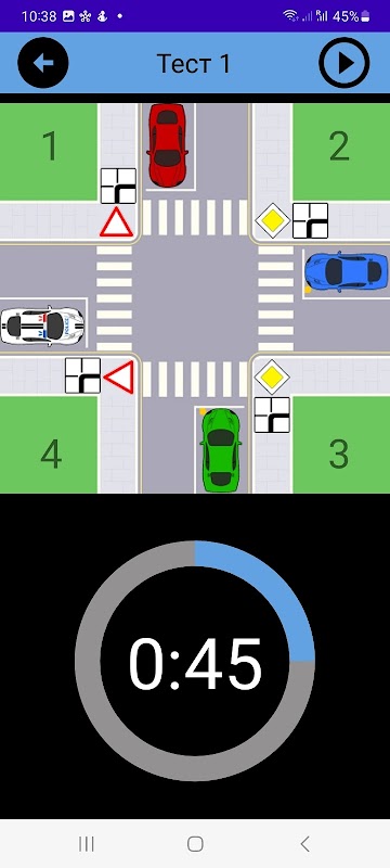 Приложение "Тест: Проезд перекрестков" помогает водителям лучше ориентироваться на перекрестках в различных дорожны na situação, e também закрепляет Правила дорожного движения.