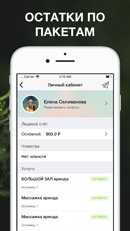 - запись на тренировки и процедуры