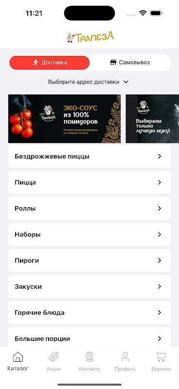 Aqui, você não pode apenas saborear a pizza tradicional, mas também hambúrgueres e pãezinhos, que, aliás, têm seu próprio toque. Por exemplo, pãezinhos com peixe do norte - chir, nelma. O cardápio inclui pratos da culinária asiática - udon tradicional, ramen, o farto beshbarmak oriental, lagman e muito mais.