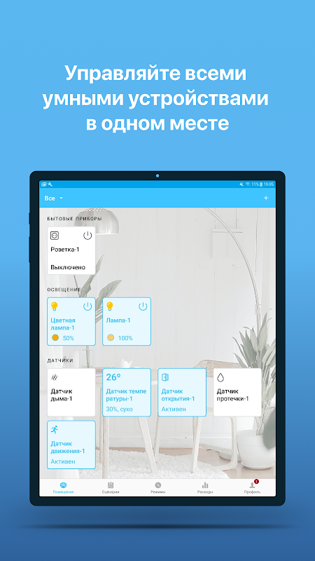 · Acompanhe o consumo de eletricidade em rublos e kilowatts com seus dispositivos: lâmpadas e aparelhos inteligentes conectados a tomadas inteligentes.