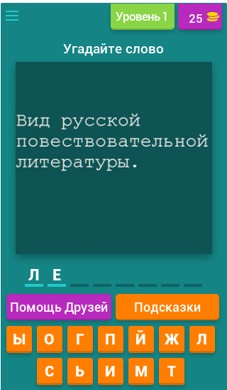 A quinta parte do questionário de adivinhar as palavras da língua russa.