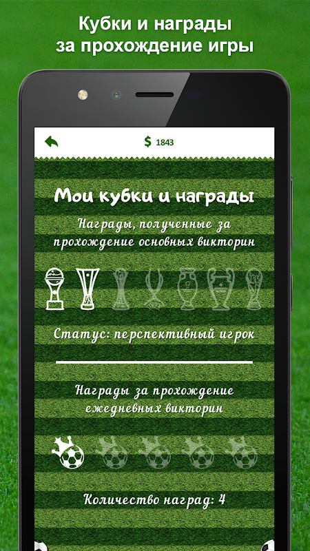 При прохождении викторины вы сможете завоевывать различные кубки, открывать карточки легендарных футболистов, получать игровые достижения и бороться за первую строчку в пользовательском рейтинге.