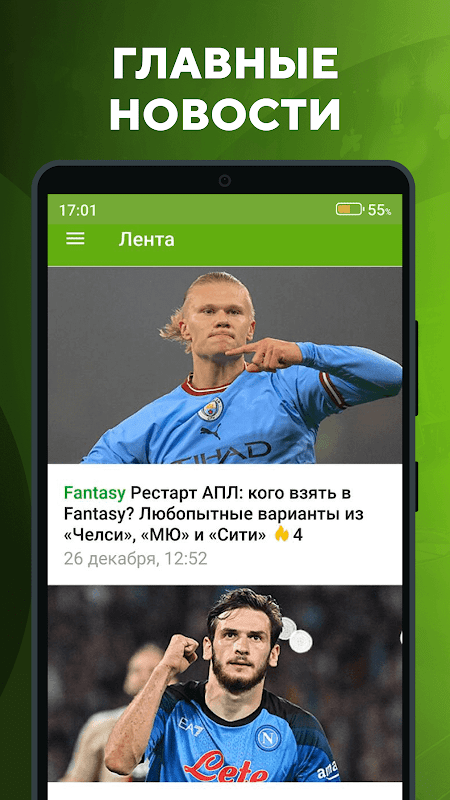 • Blogs e materiais do usuário sobre RFPL, Premier League, campeonato da Espanha, Itália, Rússia, campeonato da Alemanha e outros torneios;