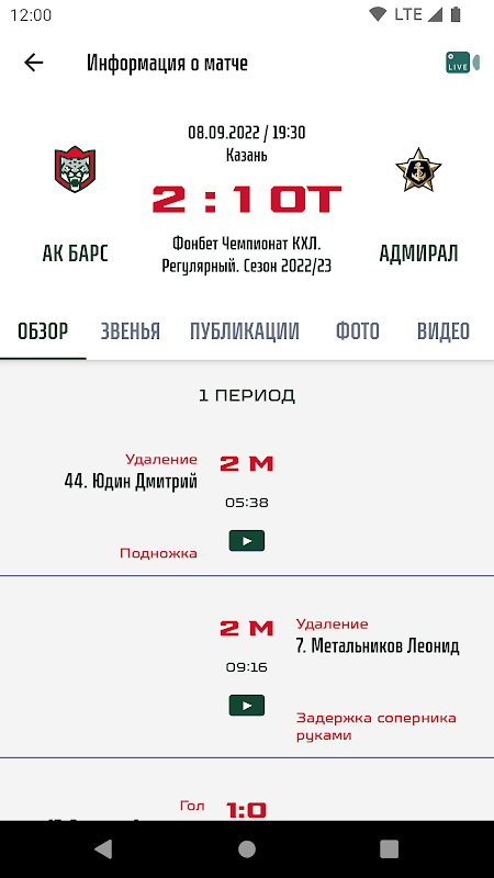 Aplicativo oficial do clube de hóquei "Ak Bars"