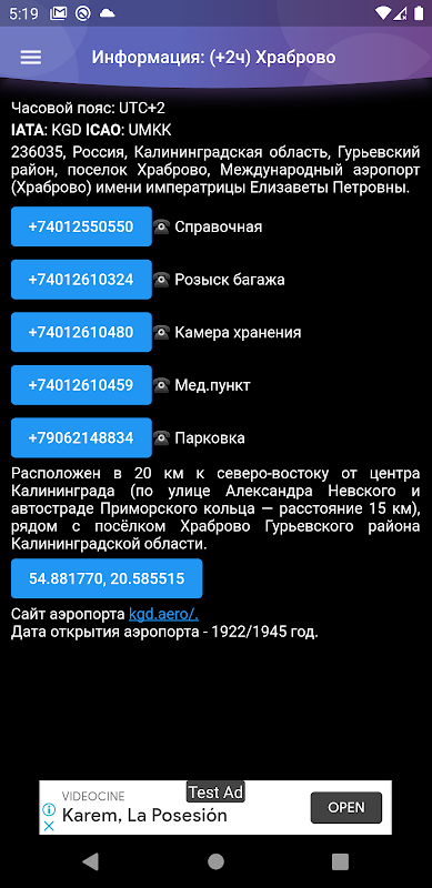 Aplicativo não oficial com dados de voo do aeroporto de Khrabrovo (Kaliningrado)