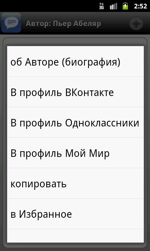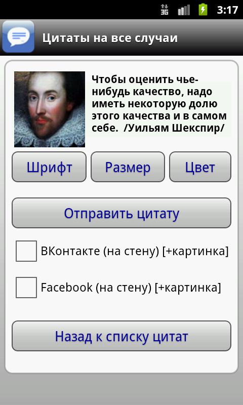 A capacidade de publicar uma foto do autor cita (para VKontakte, My World e Facebook)!