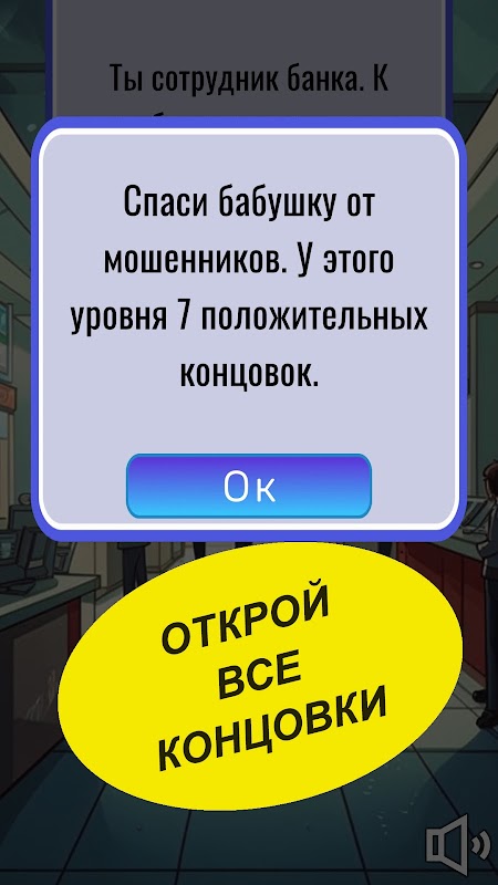 Você precisa sair vitorioso de todas as situações fazendo a escolha certa. No início de cada nível, é dada uma tarefa. Clique na ação sugerida ou nas opções de resposta para passar para a próxima etapa. Tente escolher opções que tenham maior probabilidade de levar a um final interessante e bom.