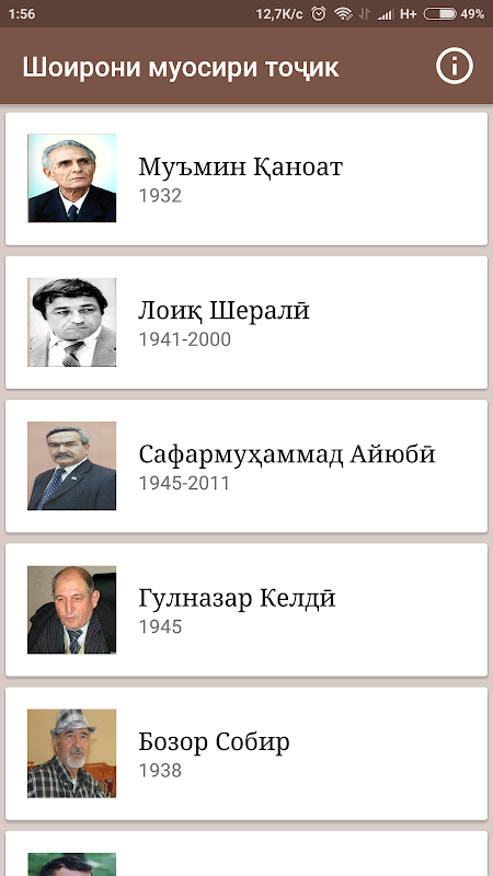 Ҳаёт ва фаъолияти шоирони муосири тоҷик. Аз ҷумла Садриддин Айнӣ, Бобоҷон Ғафуров, Мирзо Турсунзода, Саидалӣ Вализода, Сотим Улуғзода, Абулқосим Лоҳутӣ, Пайрав Сулаймонӣ, Тилло Пӯлодӣ, Ҳақназар Ғоиб, Саидалӣ Маъмур, Муъмин Қаноат, Лоиқ Шералӣ, Сафармуҳаммад Айюбӣ, Гулназар Келдӣ, Бозор Собир, Камол Насрулло, Муҳаммад Ғоиб, Сафар Айюбзодаи Маҳзун, Низом Қосим, Рустам Ваҳҳоб, Давлат Сафар, Содиқи Завқӣ