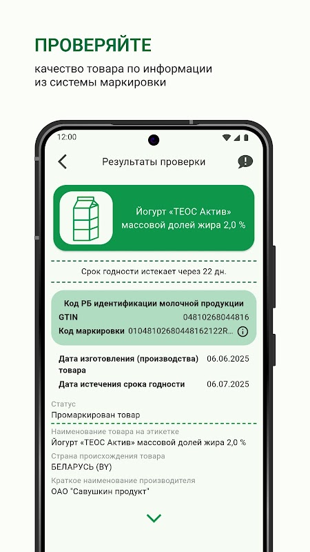Os consumidores de produtos no território da República da Bielorrússia poderão verificar a autenticidade das mercadorias no pedido da Electronic SIGN e obter informações sobre o fabricante, composição e prazo de validade, data de emissão