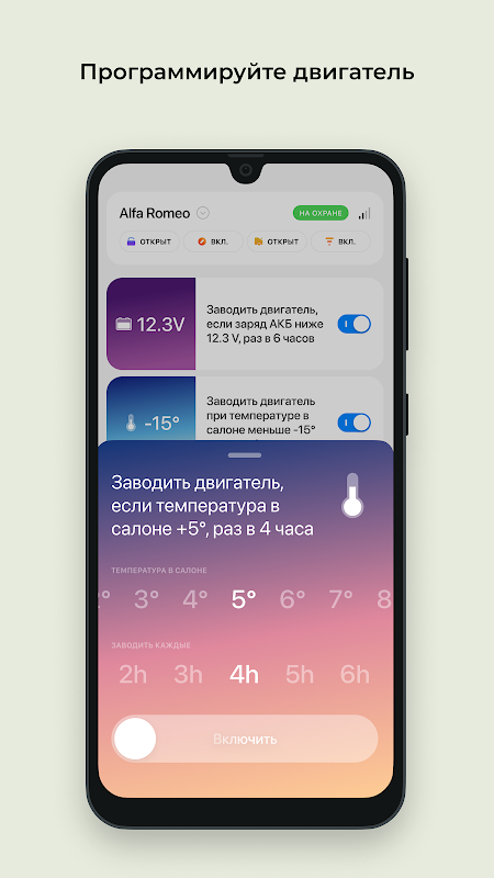 - Partida automática inteligente: configure a partida do motor de acordo com a programação, temperatura ou nível de carga da bateria