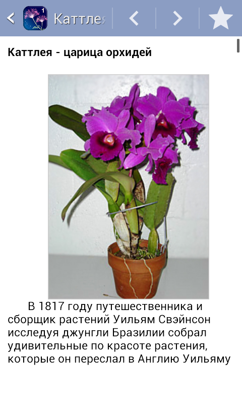 Devido ao grande número de fotos do aplicativo é dividido em duas partes. A primeira parte contém um catálogo de plantas de A a K, a segunda - a partir de K a Z