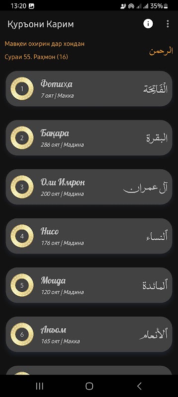 114 surai Kuryoni Karim - Toҷiki, Arabi, Kirilli, Rusi va Ozbeki.