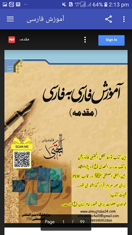 Basically this App consists of 7 books containing very comprehensive and productive course. By using this app one can easily fluent at Persian Language in very short span of time. Application is developed by Persian Department at AL-Mustafa International University for fresh scholars.