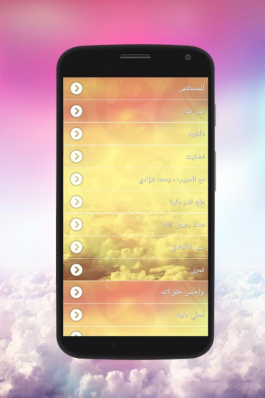 اناشيد وفي حب و وصف النبي صلى الله عليه و سلم يحتوي على مجموعة من الاناشيد مثل طلع الدر علينا, فمن شاء, أصلي عليك, سيد الأخلاق, تاج المدائح, اسرى بك الله, ولد هدى, محمد المبعوث و المزيد ينتظرك لتكتشفه داخل التطبيق.