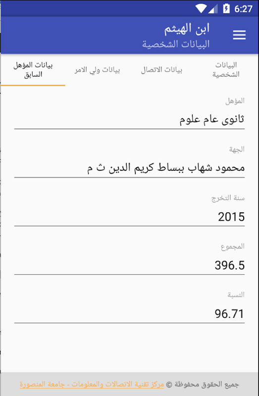Informações sobre ابن الهيثم لإدارة شئون الطلاب APK