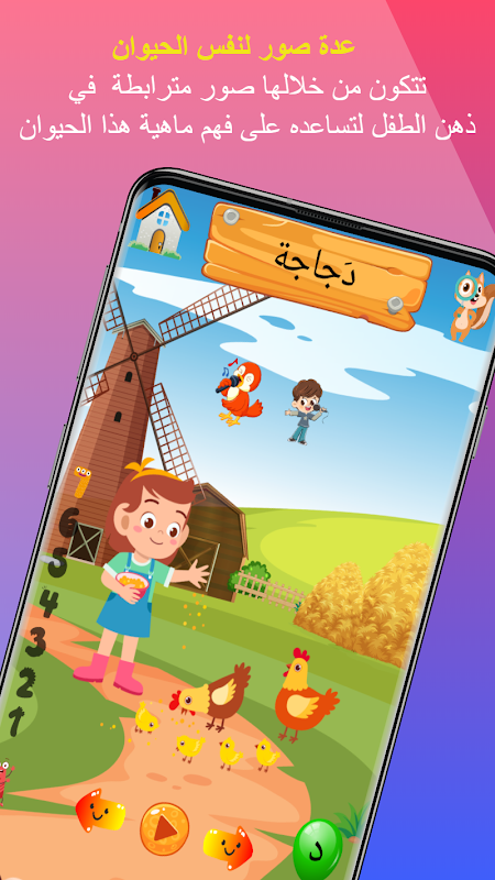 ميزة أخرى هي العرض التلقائي حيث يتم عرض الحيوانات الواحد تلو الآخر مع الاستماع لاسم الحيوان وصوته.