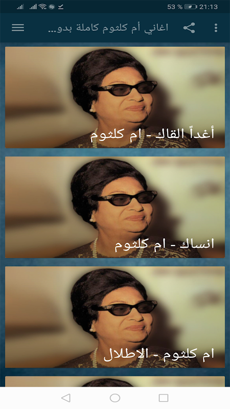 ماذا تنتظر قم بتحميل تطبيق أغاني ام كلثوم الطويلة مؤثرة 2018 و إستمتع أغاني ام كلثوم الطويلة بدون أنترنيت