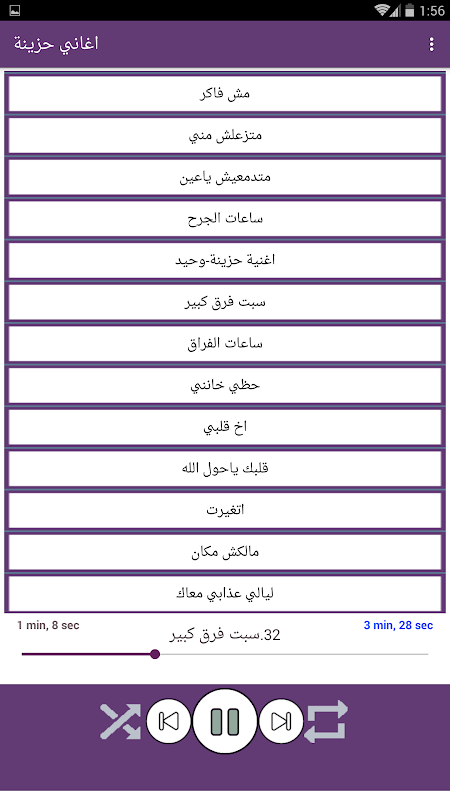 Você encontrará no aplicativo as canções tristes mais legais de vários artistas como Sherine Abdel Wahab, Ahmed Shaiba, Tamer Ashour, e muitas canções tristes de 2019 e também canções tristes de 2020 sem a net canções tristes 2021