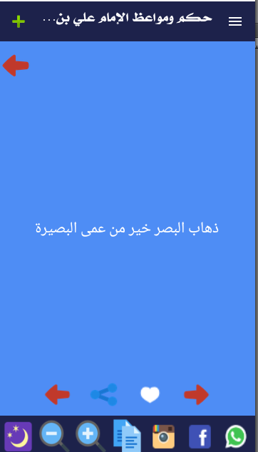 يحتوي تطبيق يحتوي تطبيق حكم ومواعظ علي بن أبي طالب على اكثر من 20 الف مقولة للامام علي، يمكنك التطبيق بخصائصه الفريدة وادواته سهلة والبسيطة والتي تستطيع من خلالها مشاركة الرسائل بين جميع اصدقائك على مواقع وتطبيقات شبكات التواصل الاجتماعي .