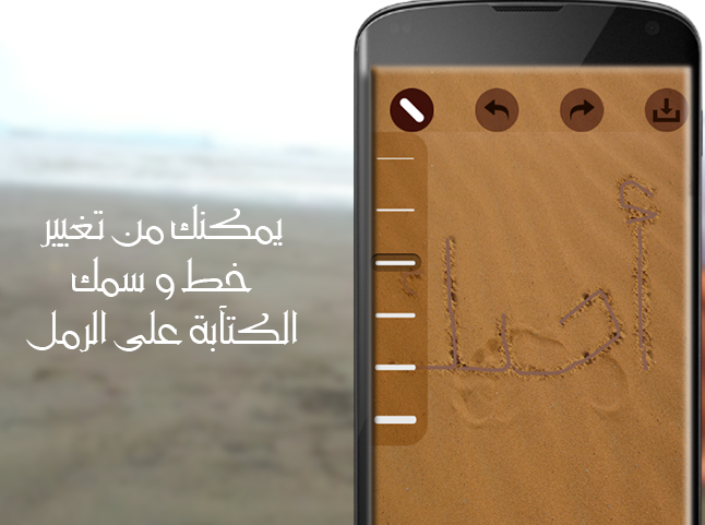 - قم بكتابة اسمك أو اسم حبيبك أو أرسم أي شيئ عن طريق لمس شاشتك و سيظهر لك كل ما كتبته في صورة جميلة للرمل بابداعك تطبيق مسلي و مفيد للاطفال أيضا و هذا لتمكينهم من تفجير طاقاتهم الابداعية مثلما يفعلون على رمال شاطئ البحر في موسم الصيف
