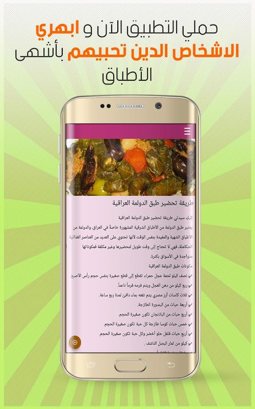 حملي التطبيق الآن و ابهري عائلتك و الاشخاص الدين تحبيهم باكلات وأطباق عراقية سهله وسريعه بدون نت نعم سيدتي دون الحاجة لولوج للانترنيت.