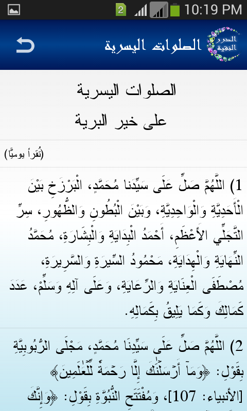 وبعد; فهذا تطبيق به مجموعة من أوراد وصلوات ومناجاة ووظائف في الطريقة الصديقية الدرقاوية الشاذلية وملحقات أخرى, منها (الصلوات اليسرية على خير البرية وشرحها بصلوات الأسماء الحسنى).