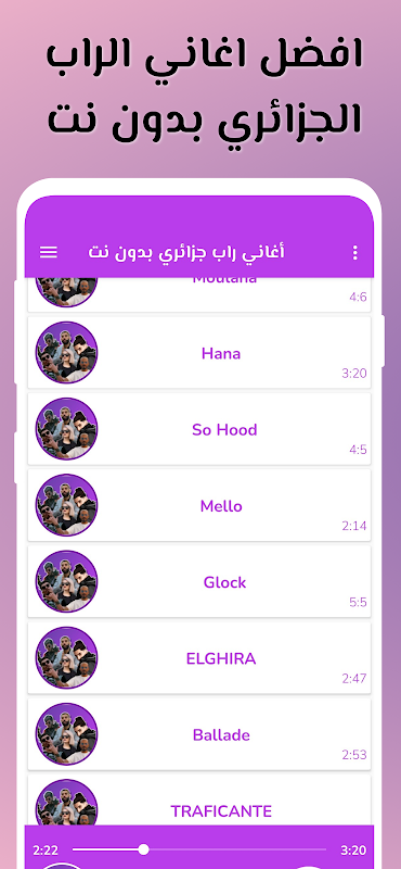 Não perca tempo procurando suas músicas de rap favoritas online, nosso aplicativo está aqui para facilitar o acesso a uma enorme coleção de rap argelino sem a necessidade de uma conexão com a internet. Basta baixar o aplicativo e curtir músicas de rap 2024