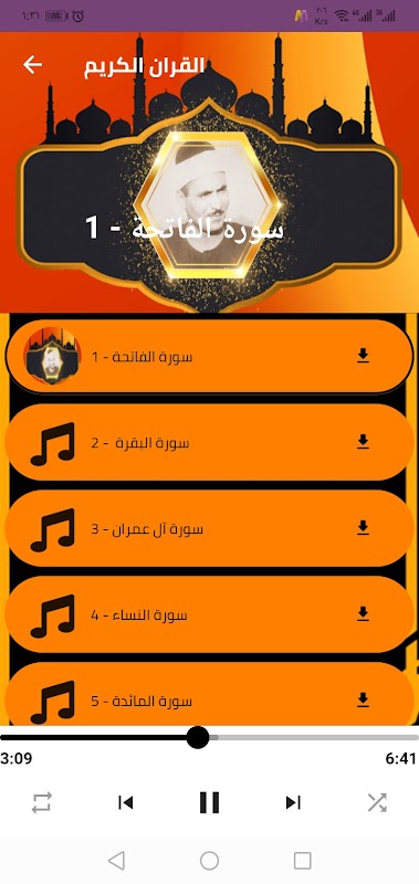 ⬅️ A interface do aplicativo Sheikh Kamel Youssef Al-Bahtimi Quran é muito simples, permitindo que você use o programa com facilidade e também navegue entre as páginas do aplicativo Quran com a voz de Youssef Al-Bahtimi, diversas súplicas religiosas e Tawashih Islâmico.