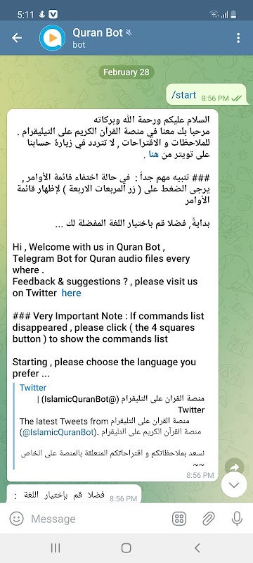 القـــــــــــــرآن الكريـــــــــــم (قراءة + بوت) لقراءة القرآن والاستماع لسوره.