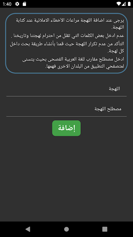 Um aplicativo iemenita com vocabulário e terminologia iemenita e em vários dialetos de diferentes províncias