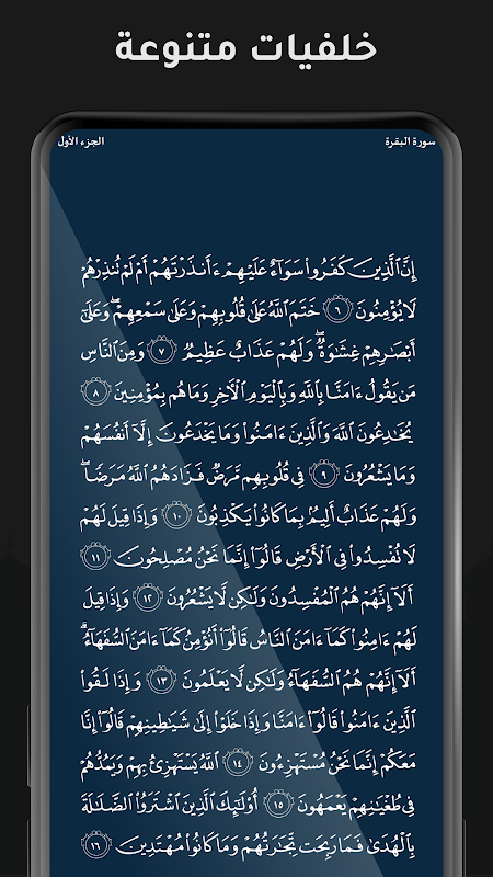 O aplicativo inclui as suratas do Alcorão Nobre escrito na íntegra em uma caligrafia clara sem a Internet