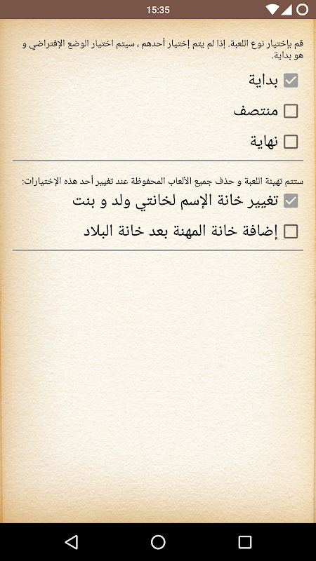 ** تغيير الخانات يؤدي إلى تهيئة اللعبة و حذف جميع الألعاب المحفوظة.