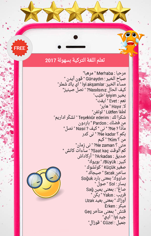 تطبيق "تعلم اللغة التركية دروس مجانية للمبتدئين" هام جداً يحتوي على الكلمات وجمل "تكلم اللغة التركية" يعتبر الأكثر شيوعاً في العالم العربي.