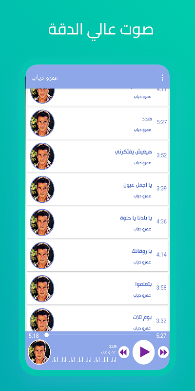 هذا تطبيق يضم روائع عمرو دياب بجودة عالية وبدون الحاجة للاتصال بالانترنت. واذا كنت من محبي الاستماع الى اغاني عمرو دياب الطويلة بدون انترنت بالعربية فان تطبيق اغاني عمرو دياب بدون نت سيتيح لك الاستماع لمزيج من التقاليد واصالة الفنان عمرو دياب بدون انترنت. كل اغاني عمرو دياب ستجدها بدون انترنت في تطبيق دو بتصميم انيق وسهل استخدام وسريع وممتع.