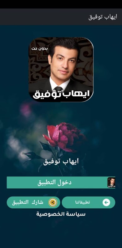 Um aplicativo que contém as mais belas canções de Ehab Tawfik sem a Internet