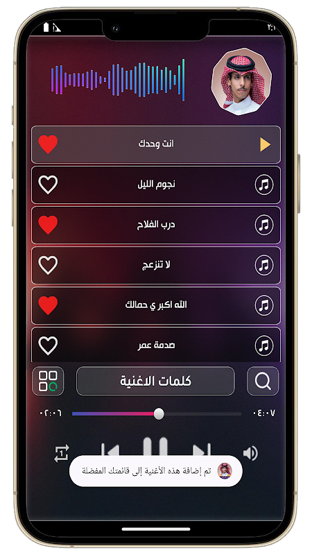 • خاصية اضافة شيلات نادر الشراري الئ قائمة المفضلة
