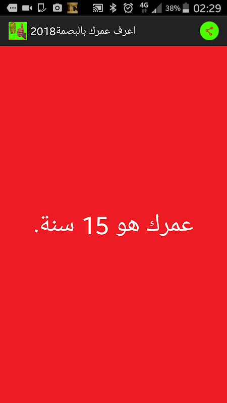 حساب العمر بالبصمة هو تطبيق جميل للتسلية و الترفيه يعطيك عمر اعتباطي بمجرد وضع بصمة إبهامك على الشاشة.استمتع بحساب العمر.