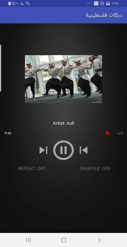 Dentro do aplicativo, muitas canções populares palestinas Nasser Knight Abdul Hamid Ayman Sabawi e certas Alasam e Qasim Najjar