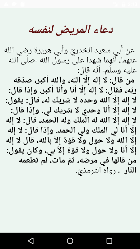 تعتبر زيارة المريض والدّعاء له بالشّفاء من حقّ المسلم على أخيه المسلم، وقد حثّنا رسولنا الكريم على الدّعاء بالخير لإخواننا، وأوصانا بزيارتهم خاصّةً عند المرض، والدّليل على ذلك قوله صلّى الله عليه وسلّم: "حَقُّ الْمُسْلِمِ عَلَى الْمُسْلِمِ خَمْسٌ. وفي رواية: خَمْسٌ تَجِبُ لِلْمُسْلِمِ عَلَى أَخِيهِ: رَدُّ السَّلَامِ، وَتَشْمِيتُ الْعَاطِسِ، وَإِجَابَةُ الدَّعْوَةِ، وَعِيَادَةُ الْمَرِيضِ، وَاتِّبَاعُ الْجَنَائِزِ". وقد رفع علماء المسلمين درجة زيارة المريض والدّعاء له إلى درجة الوجوب؛ لأنّ الله عزّ وجل قريبٌ مجيبٌ لدعواتنا، فيجب علينا ألّا نبخل على من نحبّ من الأقارب والأحباب في الدّعاء لهم بالشّفاء، ورفع الشدّة عنهم، ممّا يؤدّي إلى زيادة المحبّة والتّرابط بين النّاس، ونيل رضا الله تعالى ورسوله الكريم. و نجد في هذا التطبيق من هذه الأدعية التي يُستحبّ الدّعاء للمريض بها.