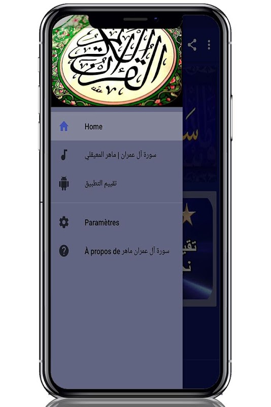 O aplicativo contém uma recitação humilde da Surata Al-Imran, com a voz do recitador Sheikh Maher Al-Muaqli