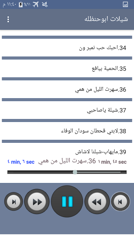 يحتوي التطبيق شيلات ابو حنظله على الشيلات التالية:
